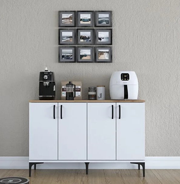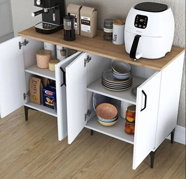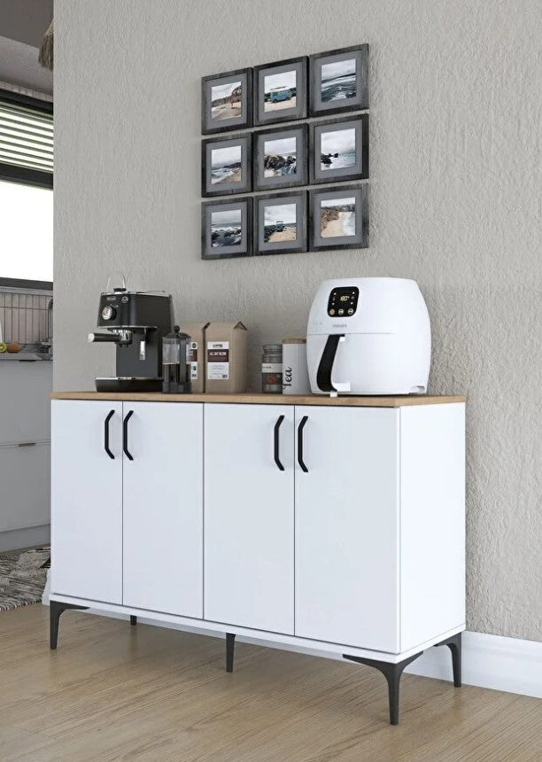 Revasser Mobilya KV100 Kahve Köşesi Çok Amaçlı Dolap 4 Kapaklı Kiler Mutfak Dolabı Beyaz - Ceviz
