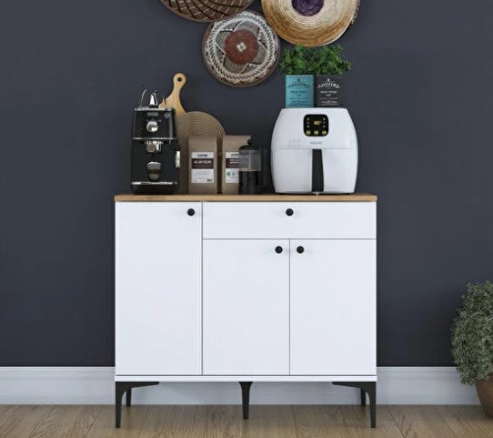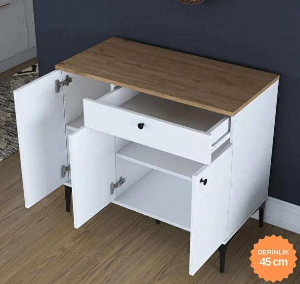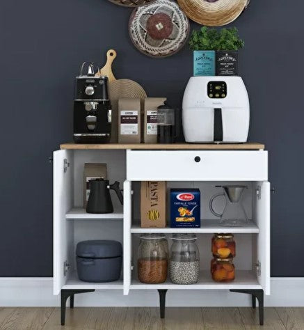 Revasser Mobilya KV300 Kahve Köşesi Çok Amaçlı Dolap 3 Kapaklı 1 Çekmeceli Mutfak Dolabı Beyaz - Ceviz