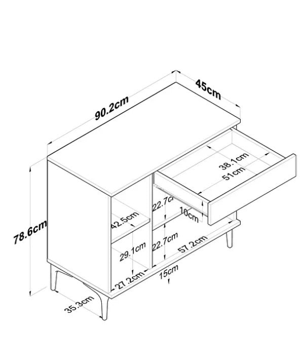 Genişlik: 90,2 cm - Derinlik: 45 cm - Yükseklik: 78,6 cm