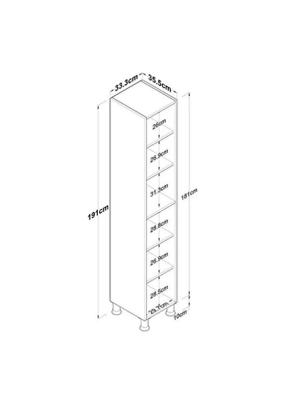 Genişlik: 33,3 cm - Derinlik: 35,5 cm - Yükseklik: 191 cm